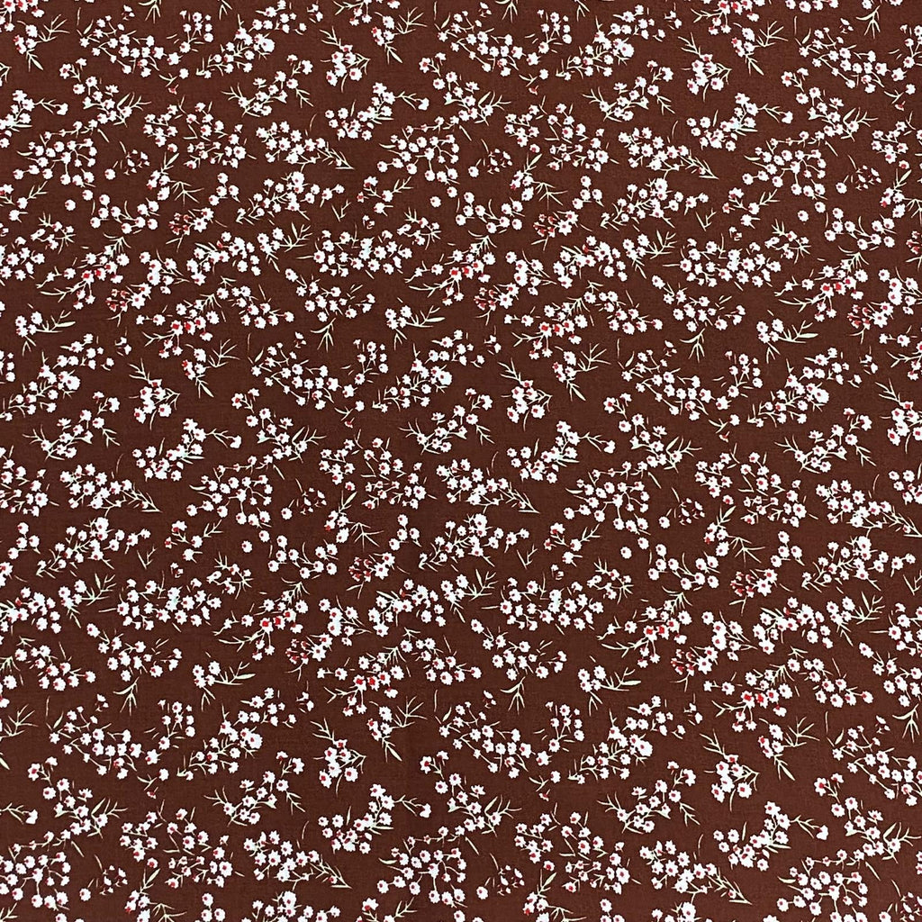 3 Metres, Printed Summer Dressmaking Viscose Fabric - Small Flower Brown