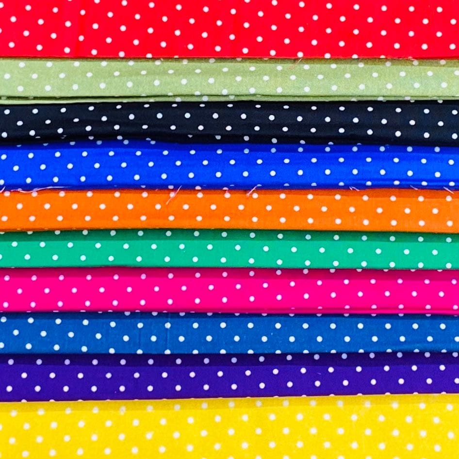 Details- A seriously spotty collection of 100% cotton poplin fabrics! You will receive 10 x 1 metre lengths of a variety of colours from our incredibly popular polka dot cotton collection.