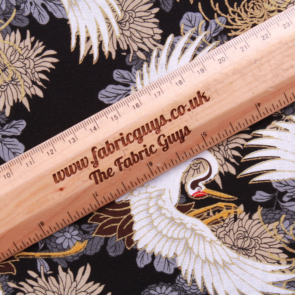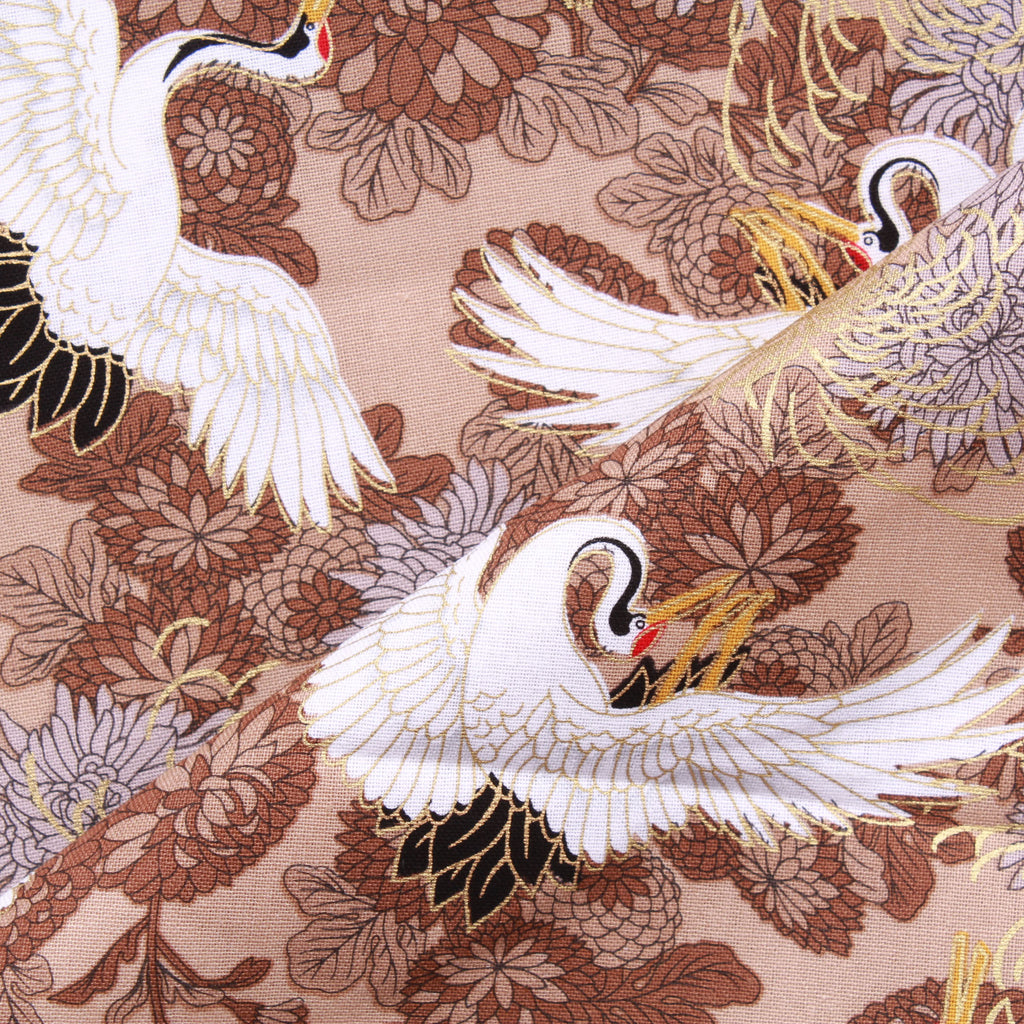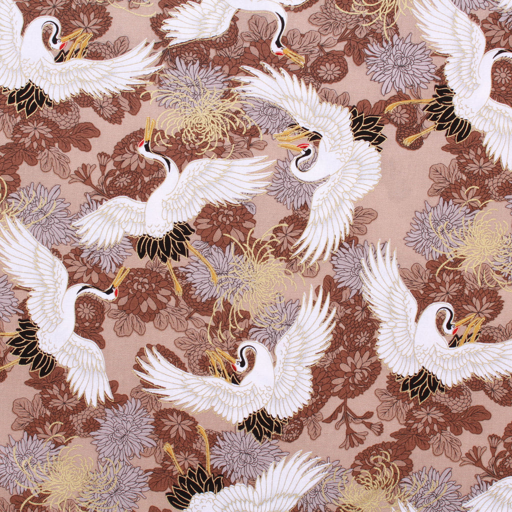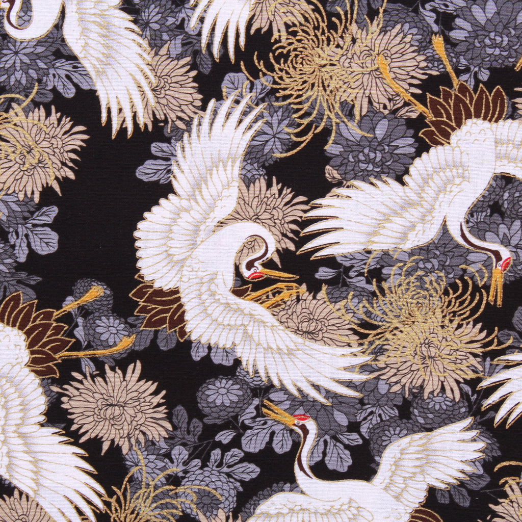 Foil Cotton Japanese Floral Swan Fabric 60" Wide